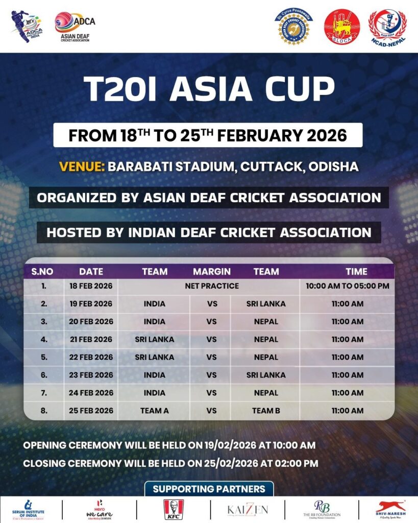 Barabati Stadium in Cuttack to host the Maiden Deaf Cricket Asia Cup 2026